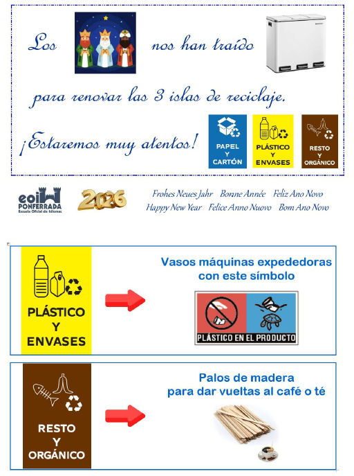 Con la intención de “Avanzar en el desarrollo de una ciudadanía ambientalmente responsable capaz de desarrollar un estilo de vida sostenible y saludable”, 3er objetivo de nuestro proyecto Erasmus+, concienciamos a la comunidad educativa de la importancia de separar los residuos que producimos.